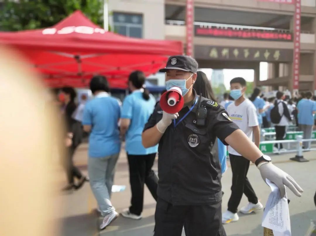 期間,各考點安保負責人趙洪臣、孫輝國、邱洪冰、賈義軍、候佃榮等主管領導及執勤隊員一早提前到達崗位,配合現場工作人員做好證件查驗,嚴禁無關人員混入考場,同時防止人員擁堵、讓考生安全。并積較協助公安機關通過定點執勤和動態巡邏相結合的方式,對轄區內各考點及周邊開展巡邏,引導學生有序入場,維護考場周邊秩序,讓考生進場安全暢通。
