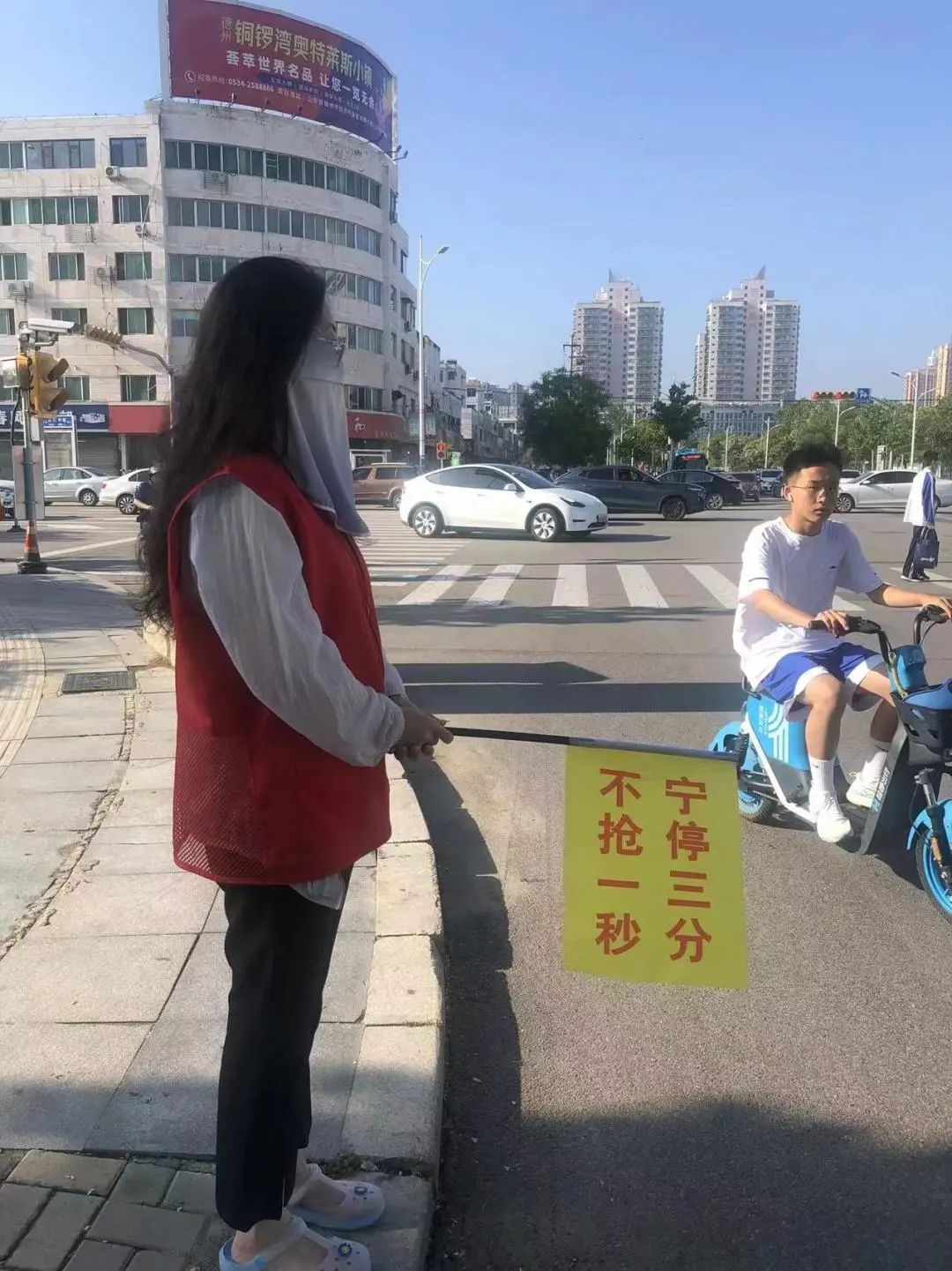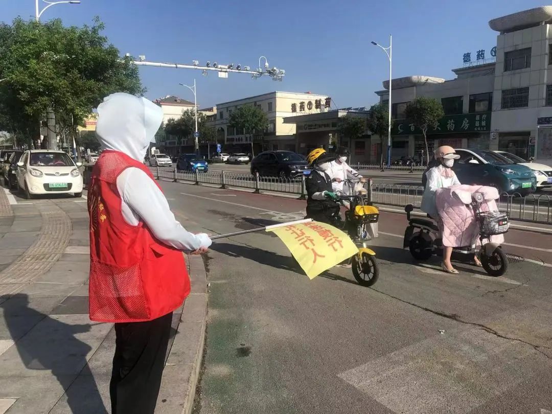 7月7日,連日降雨后的德州市開啟悶熱的“蒸煮”模式。身著“紅色馬甲”的志愿者們提前到達九中路口,烈日炎炎下,他們積較協助交警指揮疏導行人、非機動車;勸阻行人、非機動車闖紅燈等交通違法行為;宣傳引導行人文明行路;宣傳引導非機動車安全文明騎行;宣傳引導機動車行經過人行橫道時減速避讓行人;扶助老、幼、殘疾人安全文明行路,并熱情為外地駕駛人、游客提供咨詢服務等。