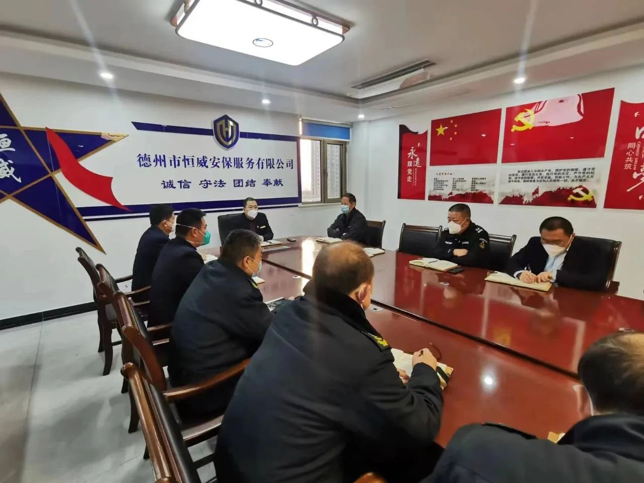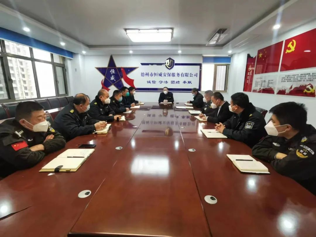 2023年1月3日,德州市恒威安保服務有限公司召開會議,對近期工作進行安排部署,會議由公司黨支部書記、總經理王新衛主持,中層以上管理人員參加會議。