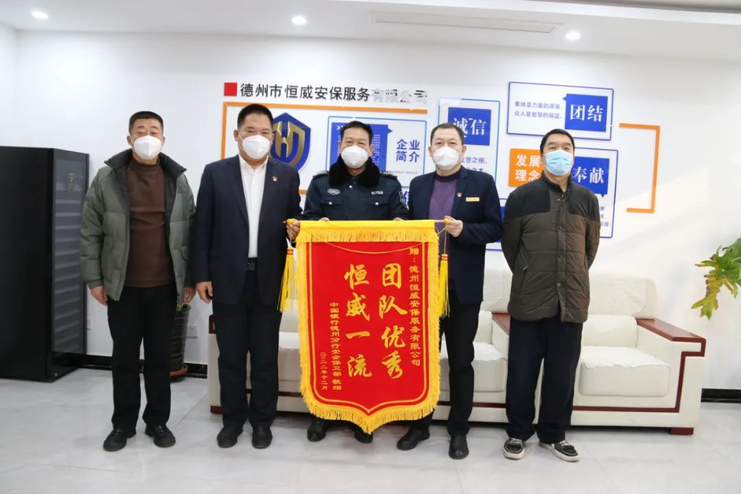 將寫有“團隊優良 恒威一流”“認真負責 貼心安?!钡腻\旗交予恒威安保手中,感謝恒威安保人在工作中履職盡責、踏實勤懇、真誠細心,特別是疫情防控期間,不畏時艱、任勞任怨堅守工作崗位,為公司有序、健康、穩定運轉貢獻了堅實力量。