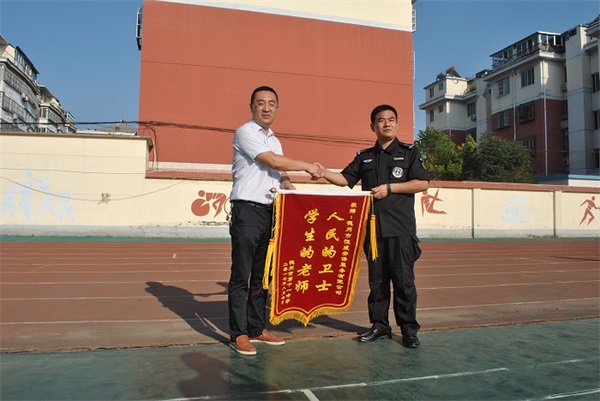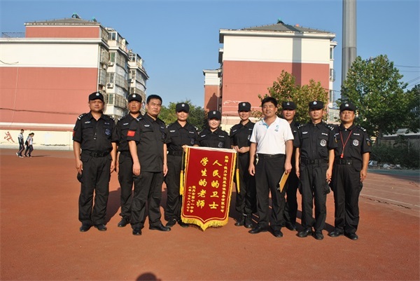 期間,教官們的嗓子喊啞了,學生們的腿累酸了、臉曬黑了,但很少有人掉隊和叫苦叫累。公司副總經理、人防二大隊大隊長王洪林多次到軍訓學??赐繂栜娪柦坦?。并受邀參加了十一中、七中的軍訓成果展示點驗活動。十一中校長親自向公司贈送了“人民的衛士,學生的老師”錦旗一面,感謝公司的鼎力協助和教官們的辛勤付出。并對公司軍訓教官過硬的軍事素質給予高度的評價。