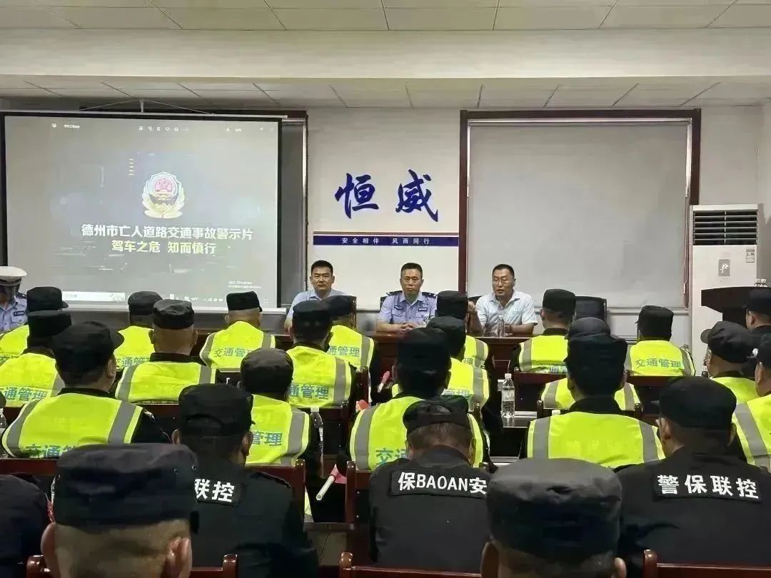為進一步提升交通協管員的政治素質和業務水平,切實預防和減少道路交通安全事故的發生。6月24日下午,德州市恒威安保服務有限公司聯合交警一大隊開展交通協管員交通安全培訓活動。交警一大隊副大隊長王震出席活動并發表講話,公司副總經理王洪林、高印東及60余名交通協管員參加活動。