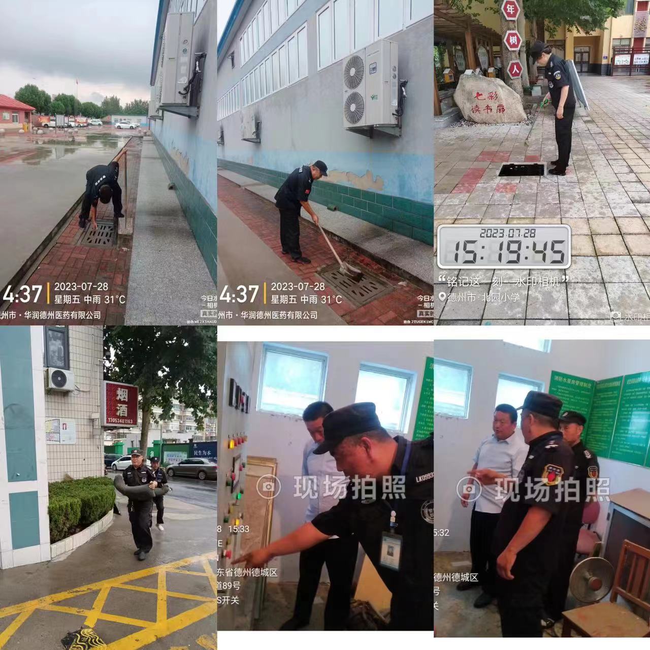 近日,受臺風“杜蘇芮”影響,州城陸續迎來多場強降雨。為切實做好防汛工作,7月28日,德州市恒威安保服務有限公司緊急下發《關于做好防臺防汛工作的緊急通知》,要求各部門務必及早部署,狠抓落實,完善防汛應急預案,落實各項防范措施和辦法,切實做好防汛各項工作。各相關責任部門按照公司部署,立即啟動防汛應急預案,并按預案嚴格落實各項防汛舉措,全力保障客戶單位安全穩定。
