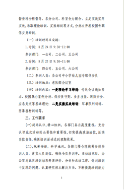 8月22日,召開校園專職保安員培訓動員會議。要求辦公室負責制定校園保安員專題培訓工作方案,按照“需要什么培訓什么、缺什么練什么”的原則,立足實戰實用實效,分批次開展校園專職保安員培訓。
