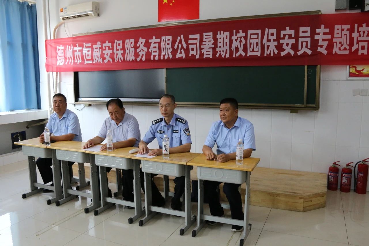 為切實提升校園保安隊伍整體素質,進一步提高校園保安隊伍的安全防范意識和應急處置能力,扎實筑牢校園安全防線。8月2日,德州市恒威安保服務有限公司組織舉辦2024年暑期校園保安專題培訓活動。德州市公安局德城分局治安大隊姚汝強隊長、德城區教體局于會燕主任及60余名恒威校園保安員參加了活動。