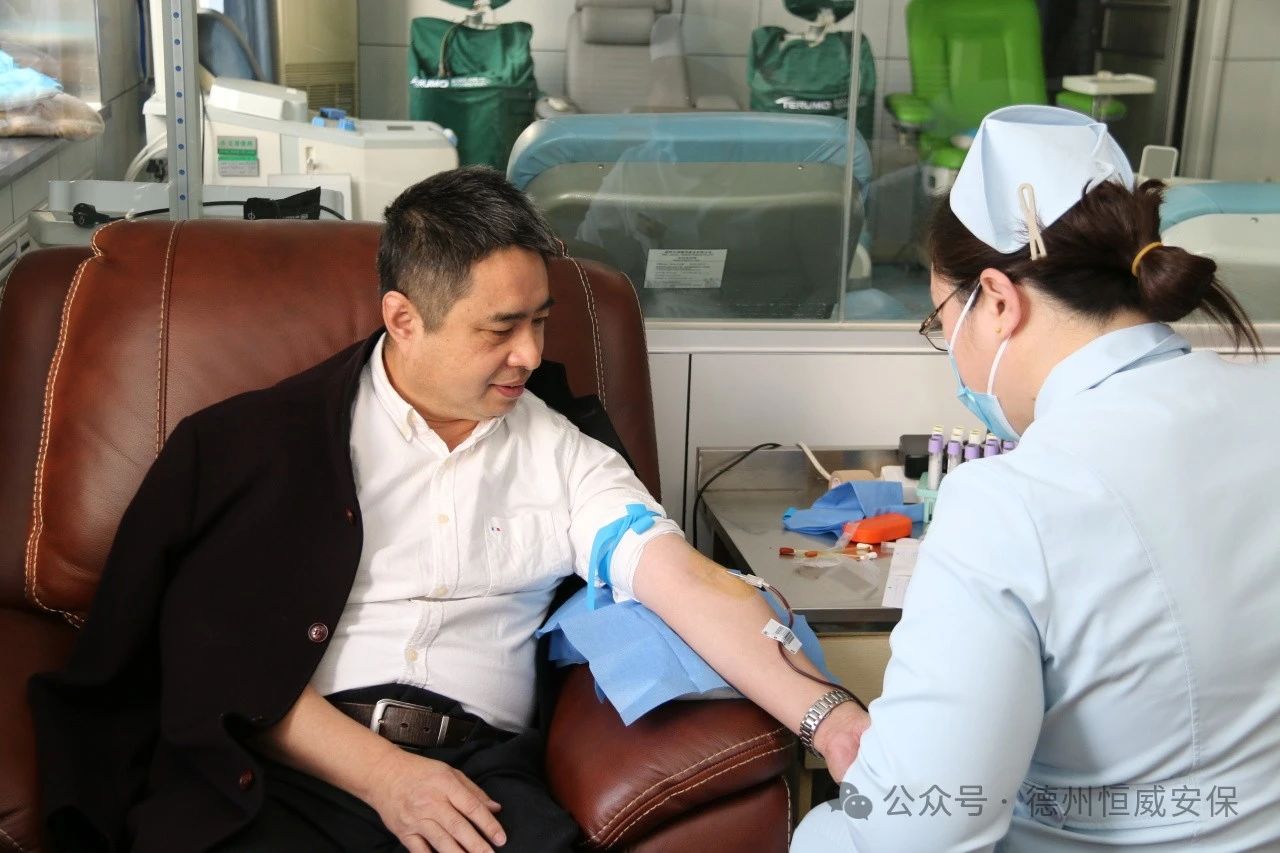 活動現場,公司員工在醫護人員指引下有序完成信息登記、血壓檢測、血液篩查等流程。公司副總經理王洪林率先垂范,成為首位獻血者,他鄭重表示:“無償獻血,是每位公民引以為榮的義務,更是彰顯我們社會責任感的直接方式。身為安保從業者,我們不僅在崗位上守護著客戶的安全,更需主動站出來,積極承擔社會責任。無償獻血,就是我們回饋社會的一項實實在在、看得見摸得著的行動,它有力證明了恒威企業文化中對社會責任的高度重視和切實履行。據悉,自1998年起,王洪林已連續多年堅持獻血,此次是他第34次獻血,累計獻血量高達13600毫升,并榮獲“全國無償獻血奉獻獎金獎”。