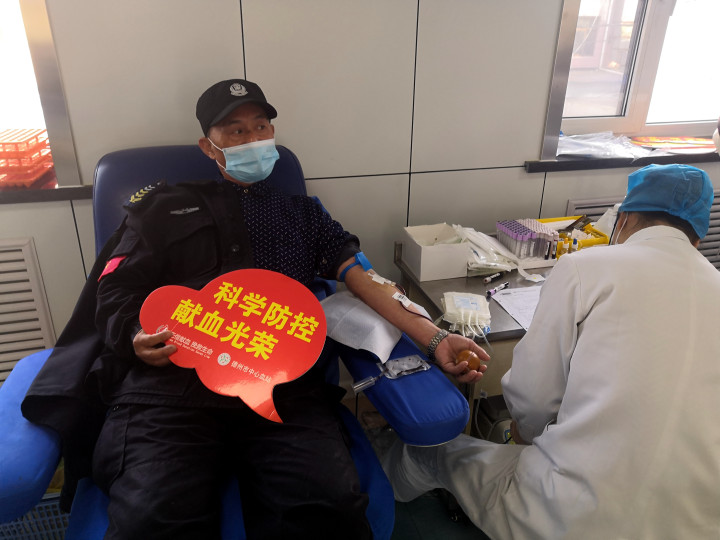 獻血現場靜默又熱烈,德州市恒威安保有限服務有限公司的員工們全程佩戴口罩,依次接受健康征詢、體溫監測、信息登記、血液檢驗等,整個過程井然有序。公司副總經理王洪林在現場為各位員工科普無償獻血的好處,并安慰好次參加獻血的“新人”不要緊張,王洪林自2001年起開始堅持義務獻血19年,迄今為止已無償捐獻全血14000毫升,曾獲得全國無償獻血奉獻獎“金獎”,而他較驕傲的還是能夠帶動著身邊的同事參加獻血中來。